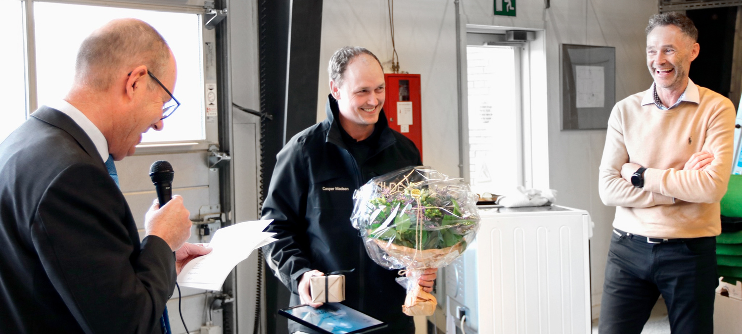 Formanden for Dansk Industri Midt Vest, Claus Arberg, stod klar med lykønskninger og holdt en tale for Casper Madsen, hvor han lagde vægt på Casper Madsens talent og gode menneskelige egenskaber, som ligger til grund for, at prisen gik til ham. Festen fortsatte efter højtidelighederne med kage og pølser til hele virksomheden.