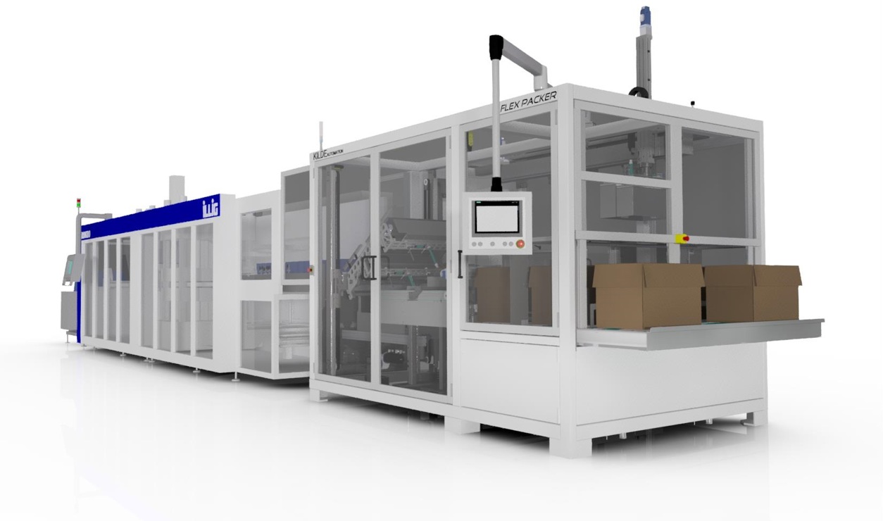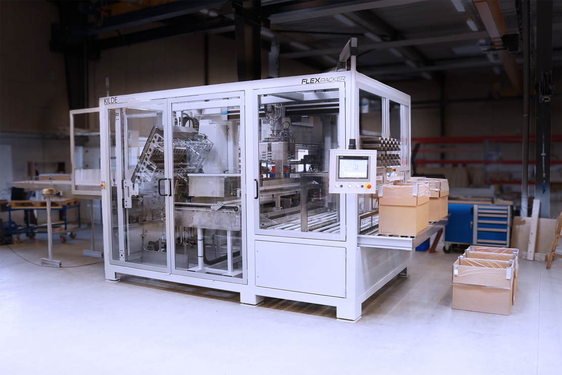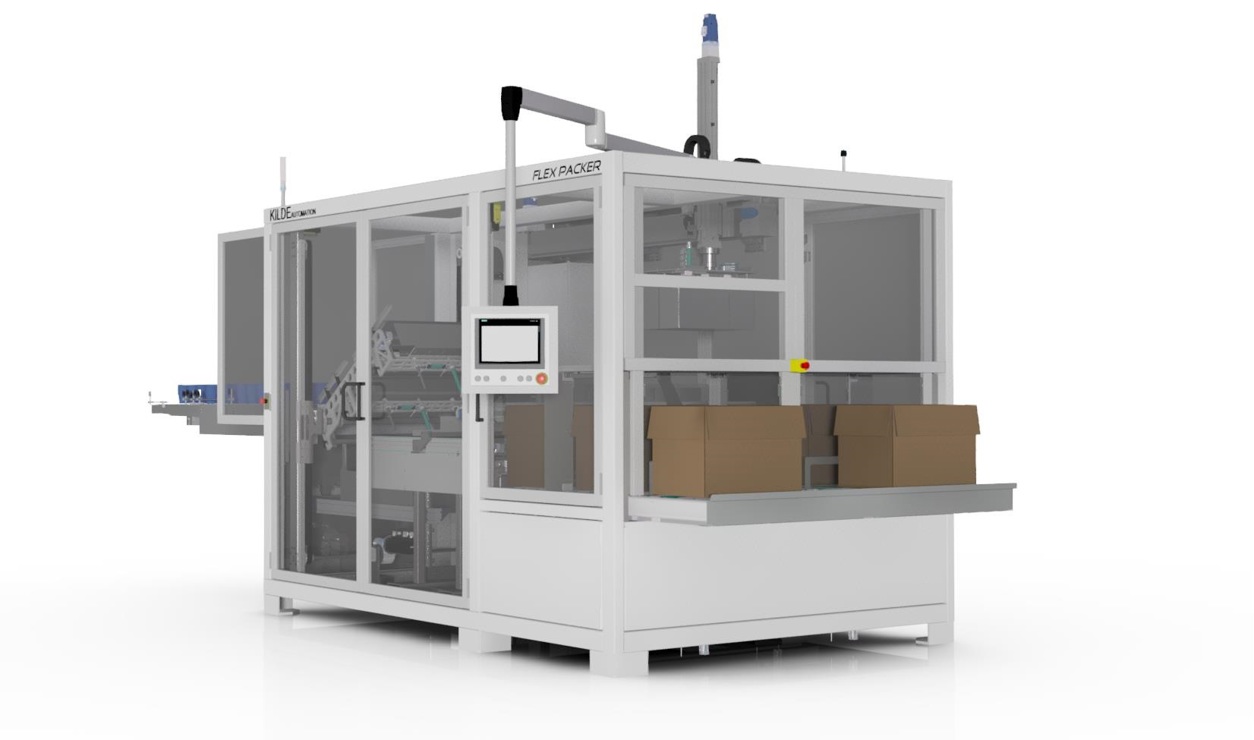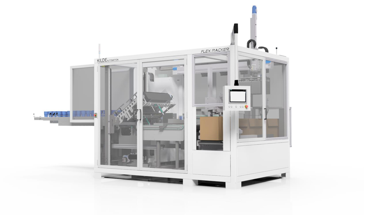 Flex Packer håndterer et stort antal produkter, som stables og forpakkes i kasser efter kundedefinerede forpakningsmønstre. Kildes Flex Packer er designet som en end-of-line-løsning, og kan også leveres som stand-alone.